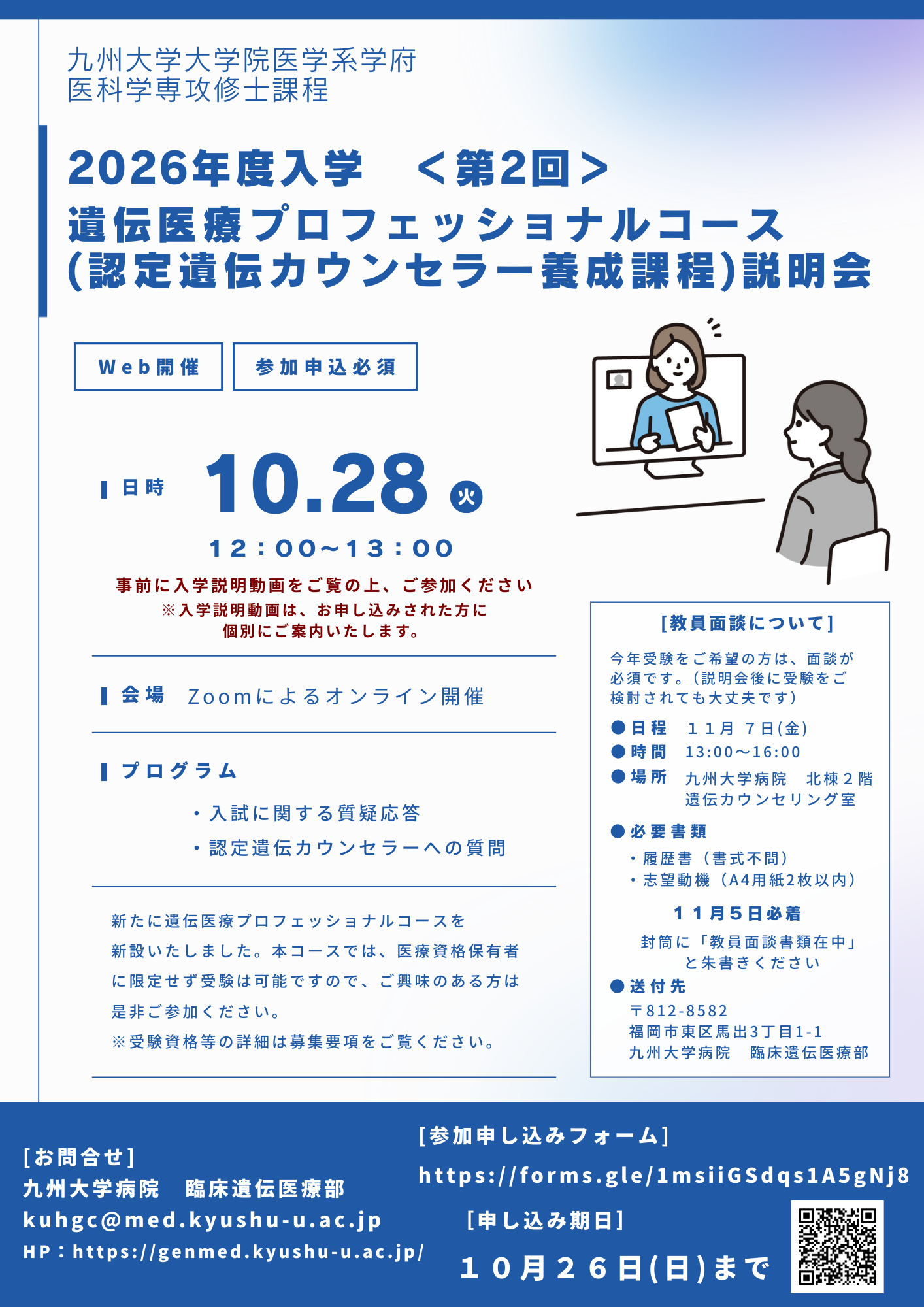 ■遺伝医療プロフェッショナルコース説明会(2026年度入学 第2回)(説明会は終了しました)