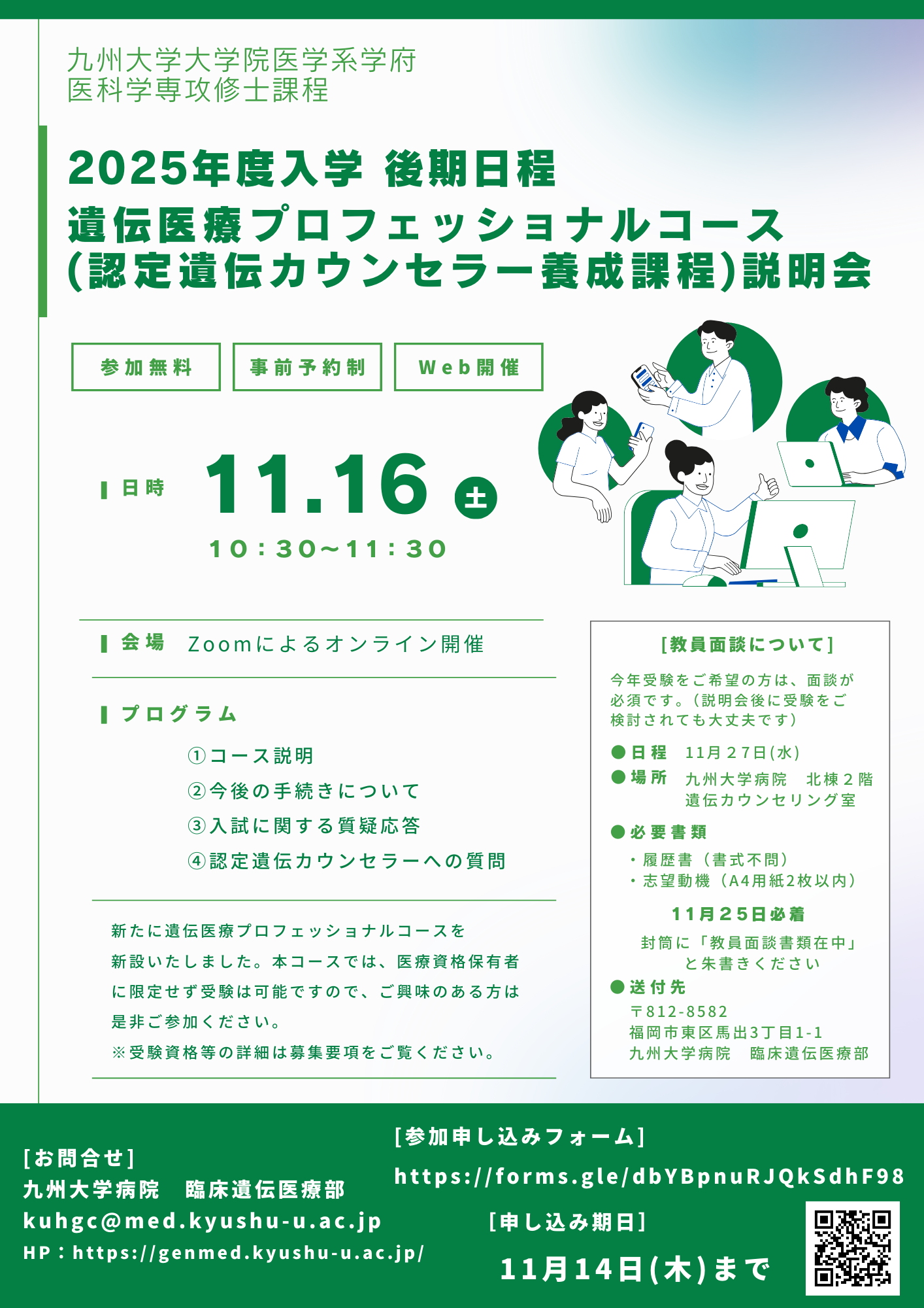 ■遺伝医療プロフェッショナルコース説明会(2025年度入学分_後期)(説明会は終了しました)